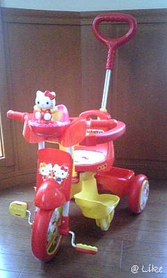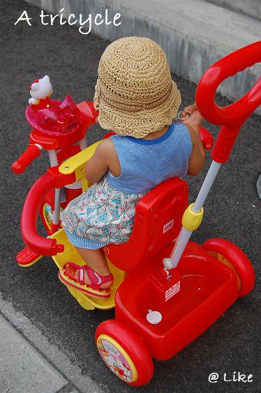 途中、飽きたのか、三輪車から離れて遊びだしたので、「乗らないなら片付けるよ」と三輪車を移動させようとしたら、「やだー!!」と言うように叫び、走って戻ってきて飛び乗り、私に「バイバイ」と言って手を振るんです。