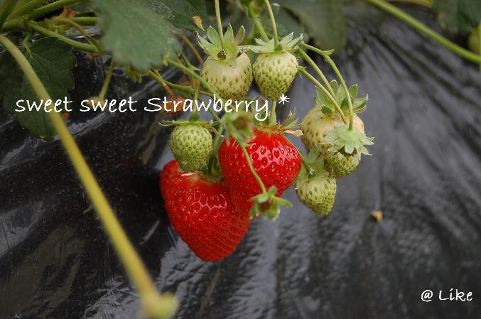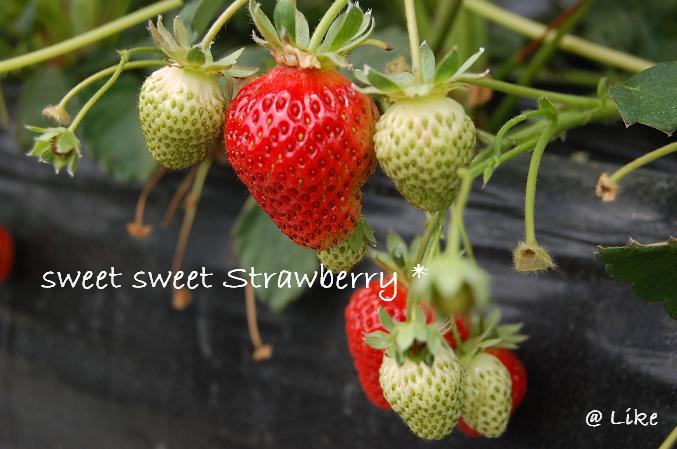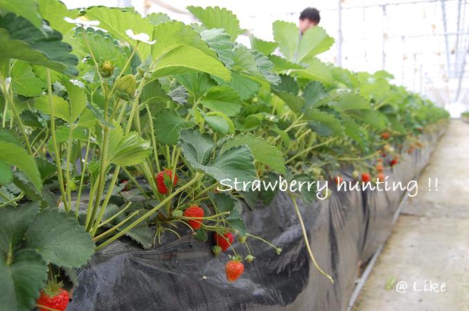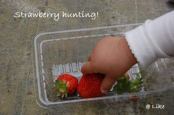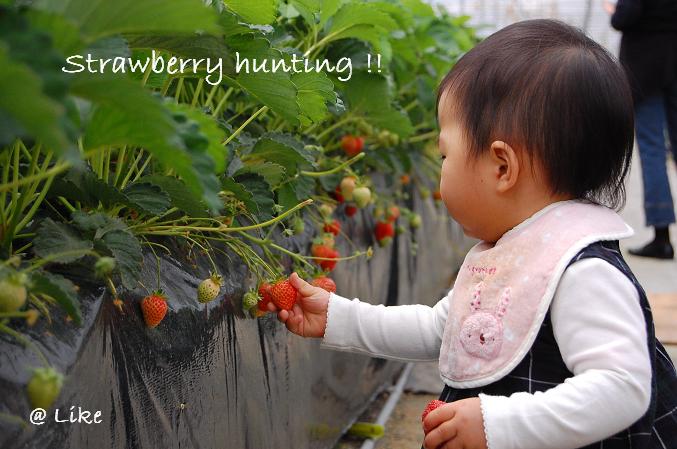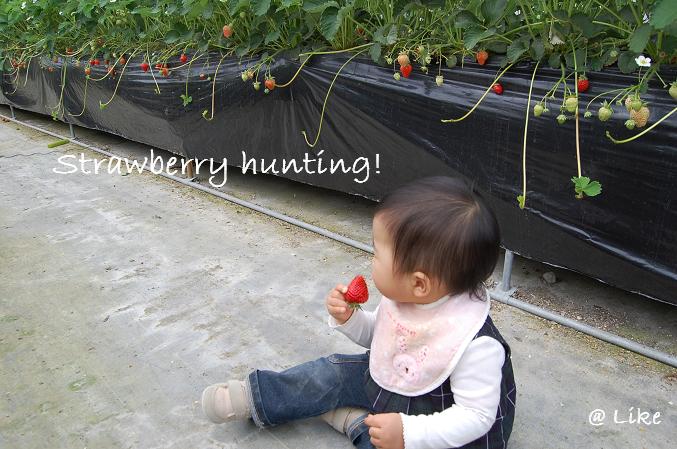 イノは初めてのイチゴ狩り。上手に取れるかな。。。