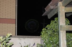 昔は家のベランダから花火が大きく見えたのに、今は花火が見える方向に新しい家が建ってしまって、今じゃ家と家の間からかすか~に見える花火を、庭の隅っこで観賞です↓