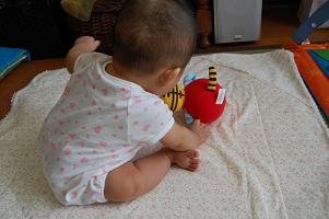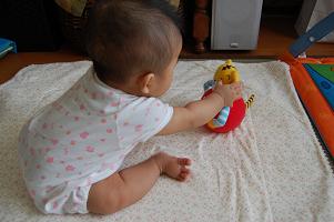 テーブルの上におもちゃを置いてあげると、けっこう1人で遊んでいます!