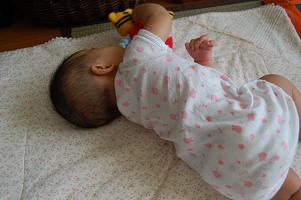最近、少~し寝返り返りができるようになってきたかも・・・。まぐれかも・・・。