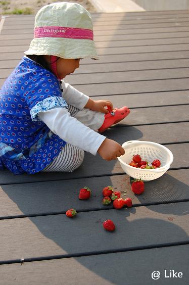 午後のお散歩で、イノと一緒にイチゴをもぎ取り、最近のおやつはもっぱらこのイチゴ!