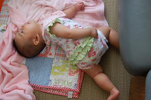 おっぱいあげたり、おむつ広げたり、音の鳴るおもちゃで遊んだり、寝転んだり(子供が