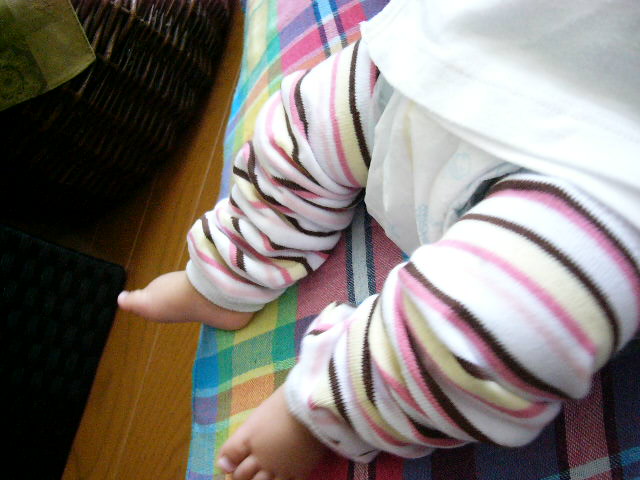 )これからますます活発になってくるし、気候も良くなってくるので、そろそろボディスーツを着せようかと思っていて、でも足を出すにはまだまだ寒いし・・・でこのベビーレッグス