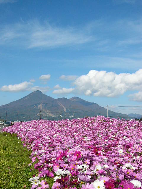 途中、車道脇にコスモスが咲き乱れていたので、車を寄せて写真を撮りました。
