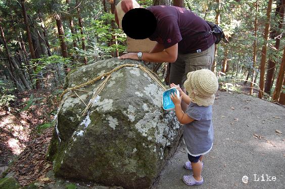 昔からひ弱なヨチヨチ歩きの“ふたつご”が薬師如来にお参りし、参道にある大きな石に体を寄せたら